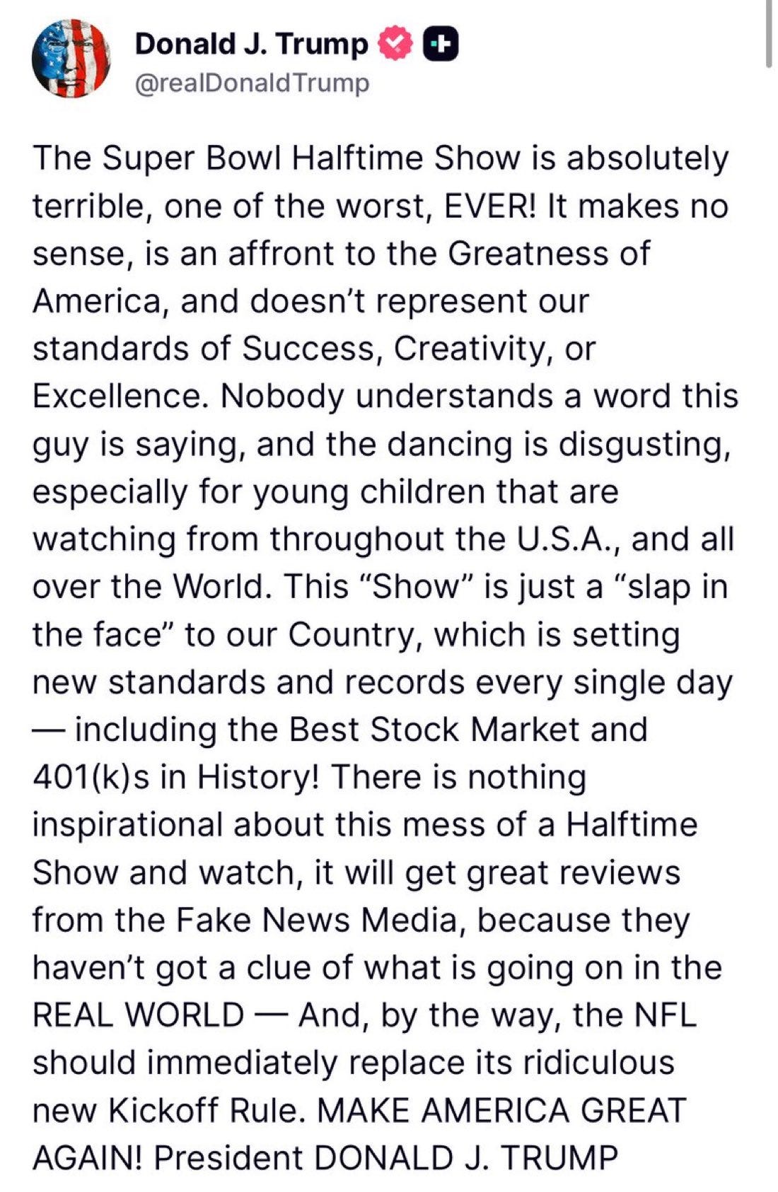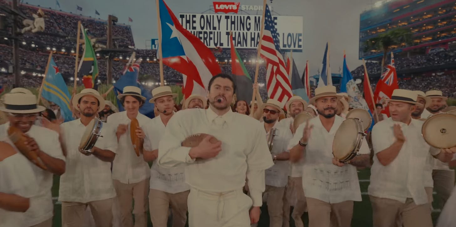 But the subtext of Trump’s statement is that Americans who speak Spanish don’t deserve to be celebrated at major cultural events and that a halftime show that salutes Puerto Rican or Hispanic culture is a “slap in the face” to America. Oddly, few conservatives complained when the Super Bowl halftime show previously featured performances by artists from Barbados (Rihanna), Colombia (Shakira), Canada (The Weeknd), Ireland (U2), or the United Kingdom (The Who, The Rolling Stones, and Coldplay). Big Bunny stands apart from these past acts in that he is an actual American citizen.